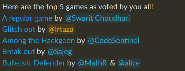 During the next 24 hours, everyone submitted an idea for the theme, and then voting opened up to decide the theme.