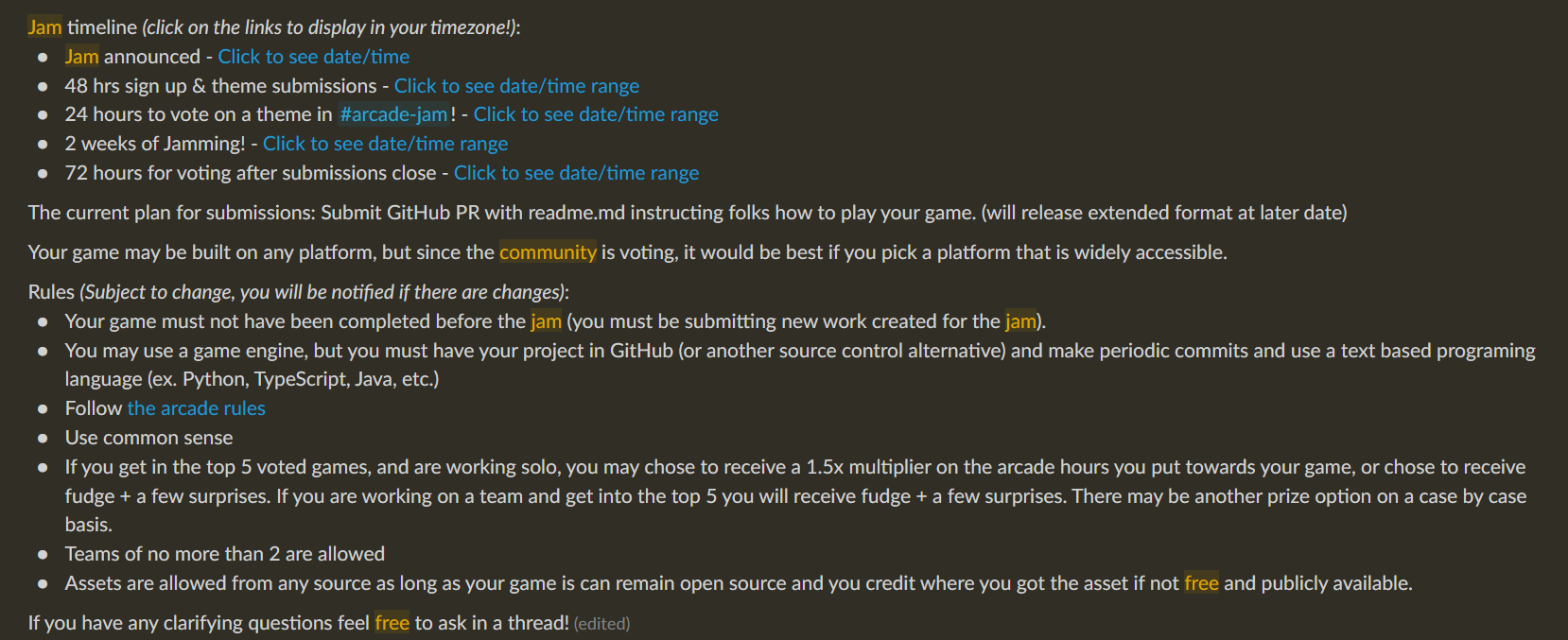 During the next 24 hours, everyone submitted an idea for the theme, and then voting opened up to decide the theme.